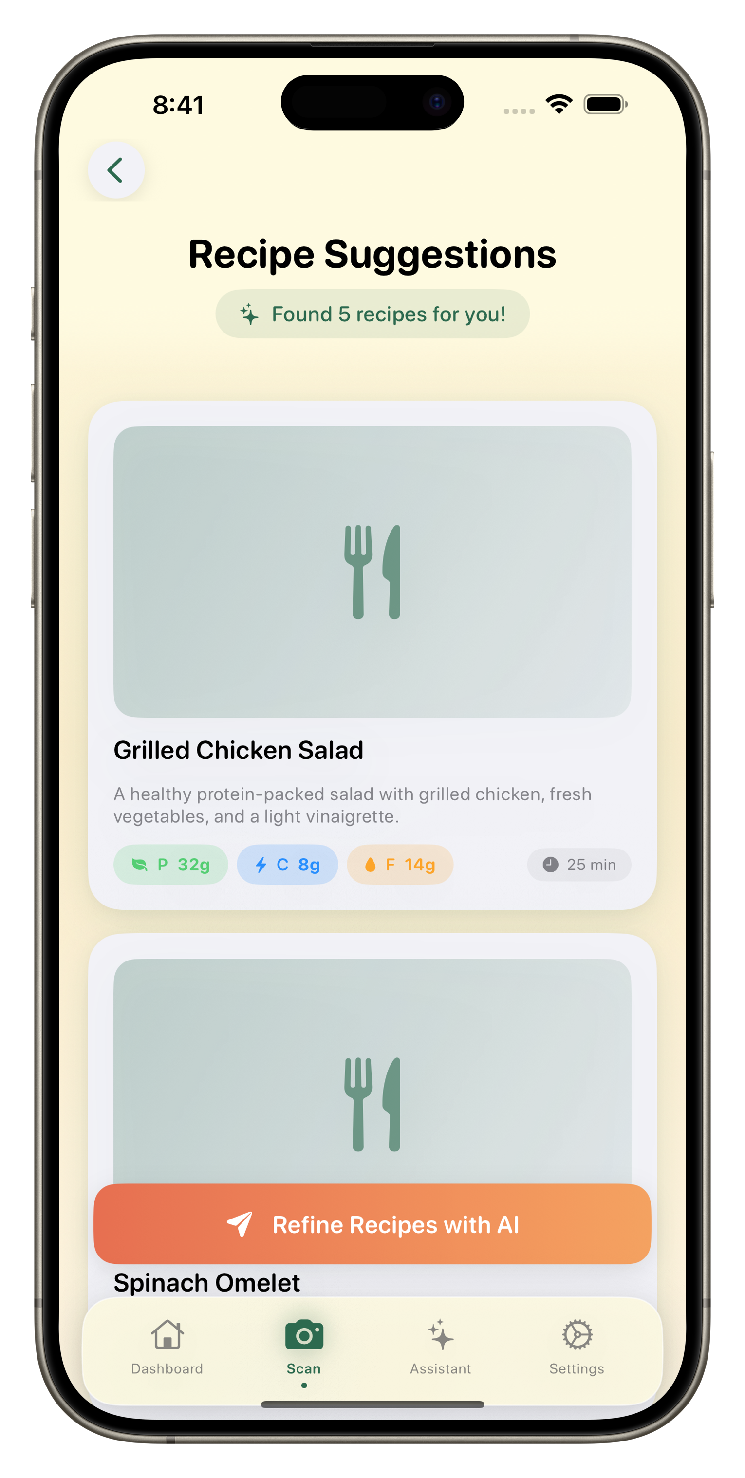 Snap a photo or add ingredients manually to get recipes tailored to your
