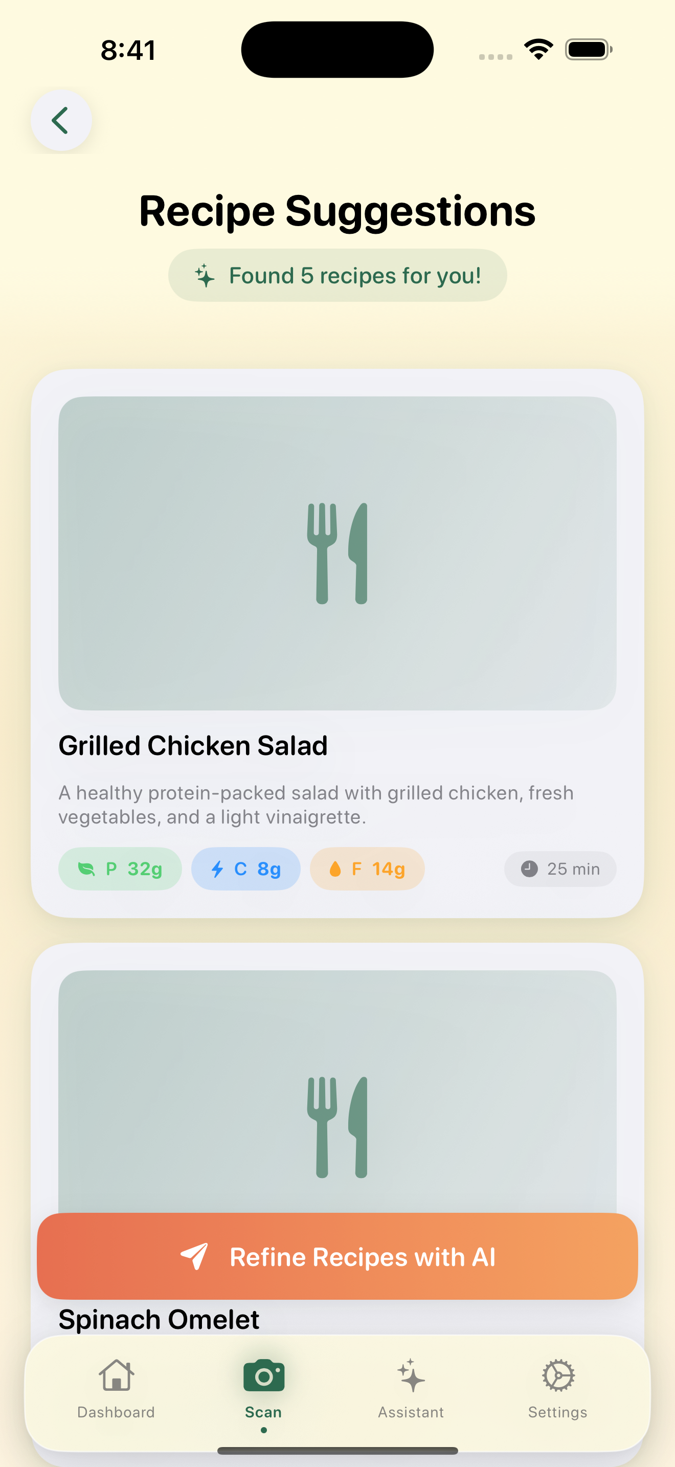 Take a photo of your ingredients. Our AI identifies everything instantly.