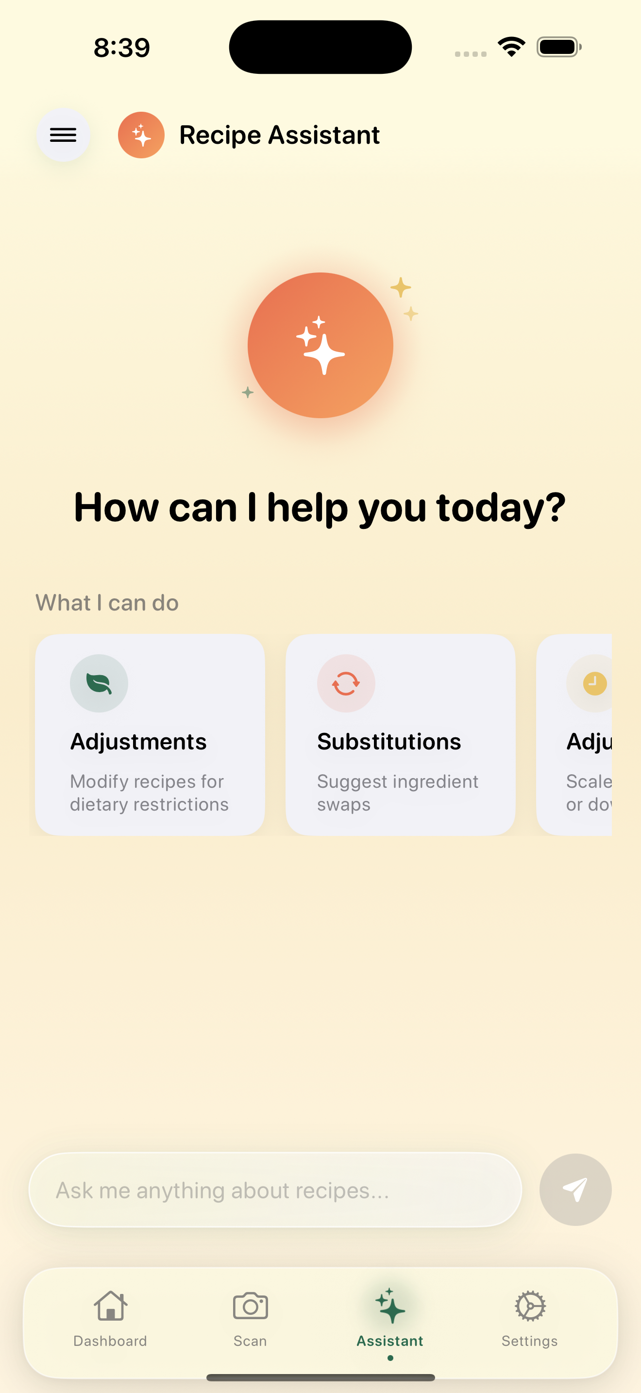 Ask questions, get substitutions, adjust servings - your personal cooking companion.